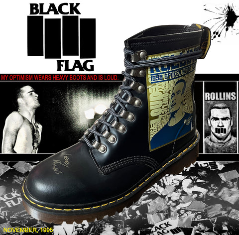 This was the first boot in our collection, Dr. Martens had it signed and sent it to us for Display.  I'm such an idiot, when I was taking it out of the box i put my thumb on his signature  - it was done with a gold pen and the ink wasn't set.. I totally smudged it, Sorry Henry
