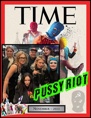 Pussy Riot came to FashioNation today, they are a protest and performance art group from Russia, we traded tickets for doc's - their show was at the Gothic Theatre and it was wild! alina, diana, masha & olga - Zhelayu vam vsem udachi, Spasibo za poseshcheniye