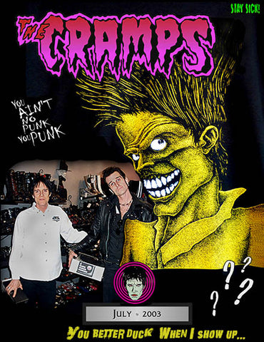 The Cramps Lux Interior - that's right "Lux Interior" with Chopper Franklin dropped by FashioNation before their show at the Ogden.  We were proud to have such a huge Rock & Roll legend in our shop and we were proud to set him up with Winkle Pickers (aka cockroach killers) from TUK shoes. I asked him to sign our rock star wall above the door thinking if we ever did move/close we could keep his autograph.  Lux was like "no way, I'm not getting up on that ladder".  He ended up signing our wall in red but this turned out to be a drag, the red marker bleached out in the sun over the years.  In hindsight we did move and we were able to keep that part for the wall above the door, it would have been rad if we could of kept his signature... RIP Lux (1946 - 2009)