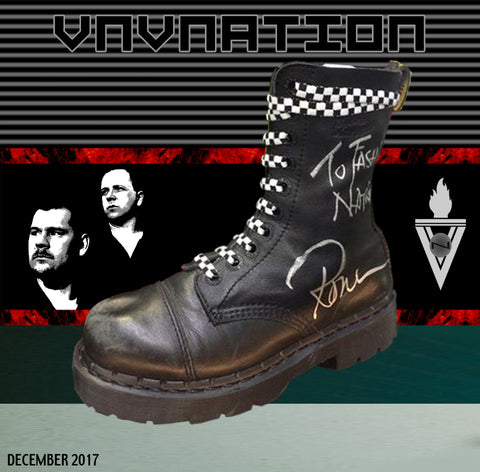 "Victory Not Vengeance" - Ronan Harris of VNV Nation signed up a cool old Dr. Marten boot for the collection. He was here in Denver for a Dj set at Milkbar